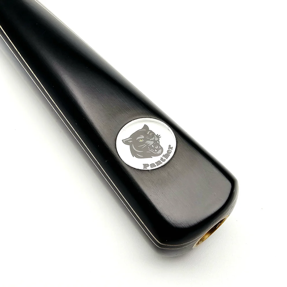 | Specifications | Cue Length: 58" – 58.75" Tip Size: 9mm (+/- 0.1mm) Shaft: Ash Shaft Length: 44.25” (112.4cm) including male joint Butt: Hand spliced genuine Ebony Butt Length: 15” (38.1cm) Butt Decoration: 5 splice Blackwood, thin white veneers Joint: Solid brass, ‘Air-Lock’ 15” from butt end Butt End Joint: Yes, Quick Action. Fits Panther Extensions |