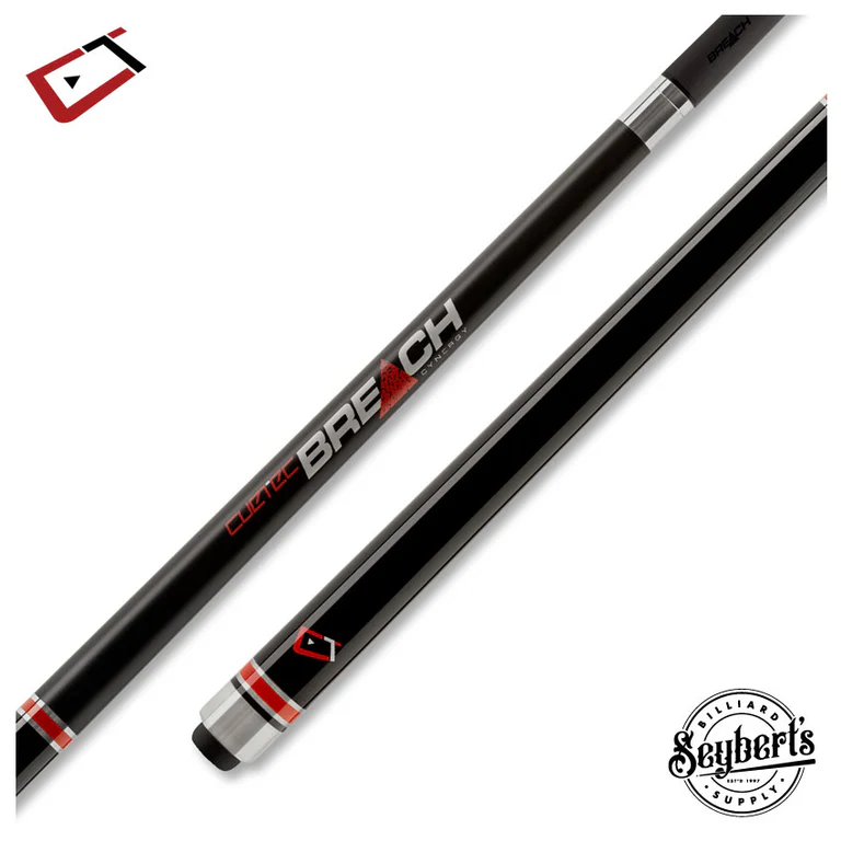 Cuetec Cynergy Breach Break Cue. Developed to provide devastating power. The Cynergy Breach break cue utilizes a 12.75mm carbon fiber composite break shaft engineered to deliver more energy for your all-important opening salvo. Featuring a stiffer carbon fiber filament orientation, that is paired with a rock-solid phenolic ferrule and white Cuetec Kintrol® Composite Break / Jump Tip. The Breach break cue arrives ready to annihilate the competition.