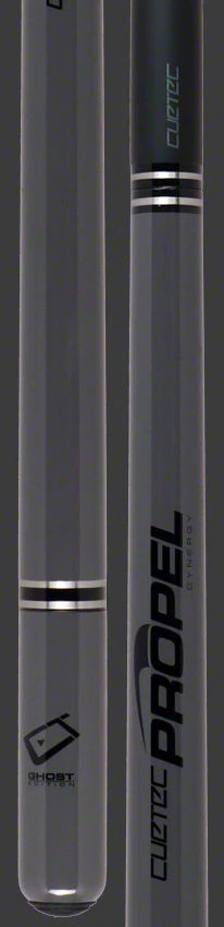 The Cuetec Cynergy Ghost Edition Propel Carbon Fiber Jump Cue. Comes standard with a white Cuetec Kintrol® Composite Break / Jump Tip tip that  provides tremendous accuracy and eliminates unintended side spin thanks to their oversize 13.9mm tip diameter.  Designed and developed to provide the most effortless and dynamic jumping experience