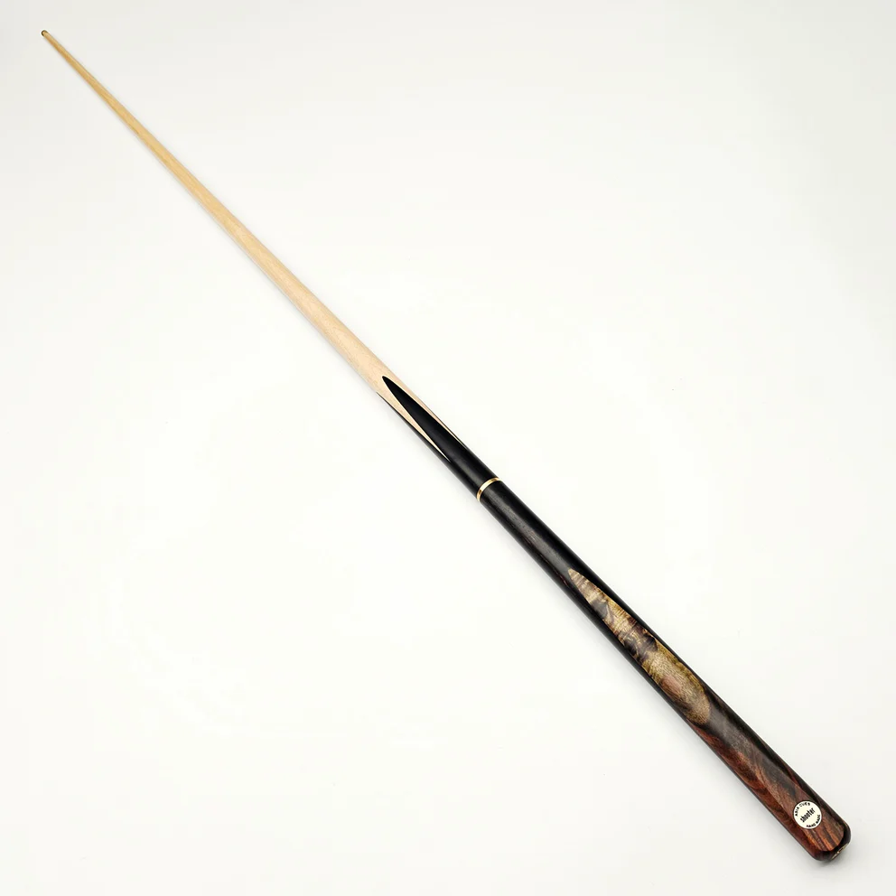 | Specifications | Cue Length: 57" – 57.75" Tip Size: 9.6mm – 10mm Shaft: Maple Shaft Length: Butt: Ebony Butt Length: 16" Butt Decoration: 7 colour Rosewood Joint: 3/4 Jointed Butt End Joint: Yes |