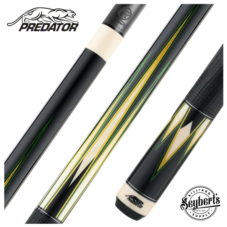 Predator Truesplice 16 Ebony Forearm with Green and Yellow Veneers Pool Cue with Lizard Wrap – Radial