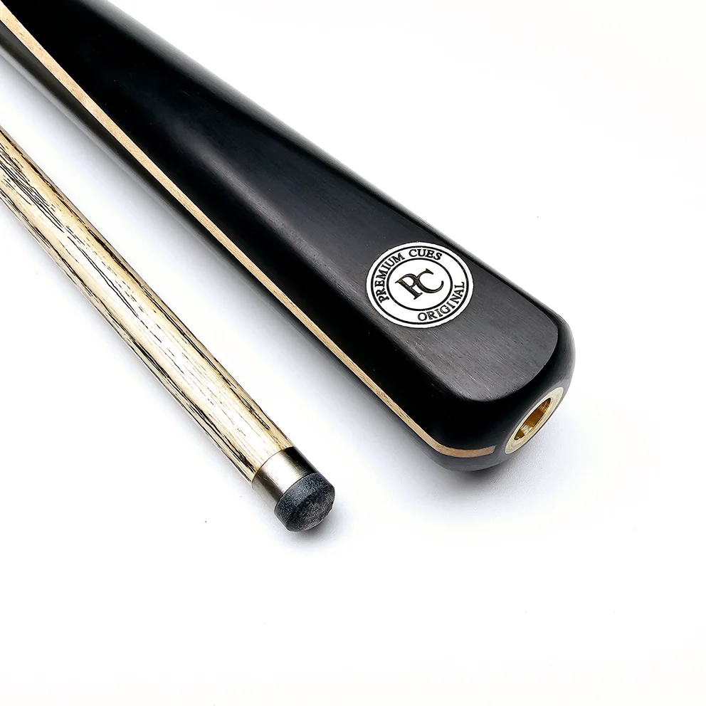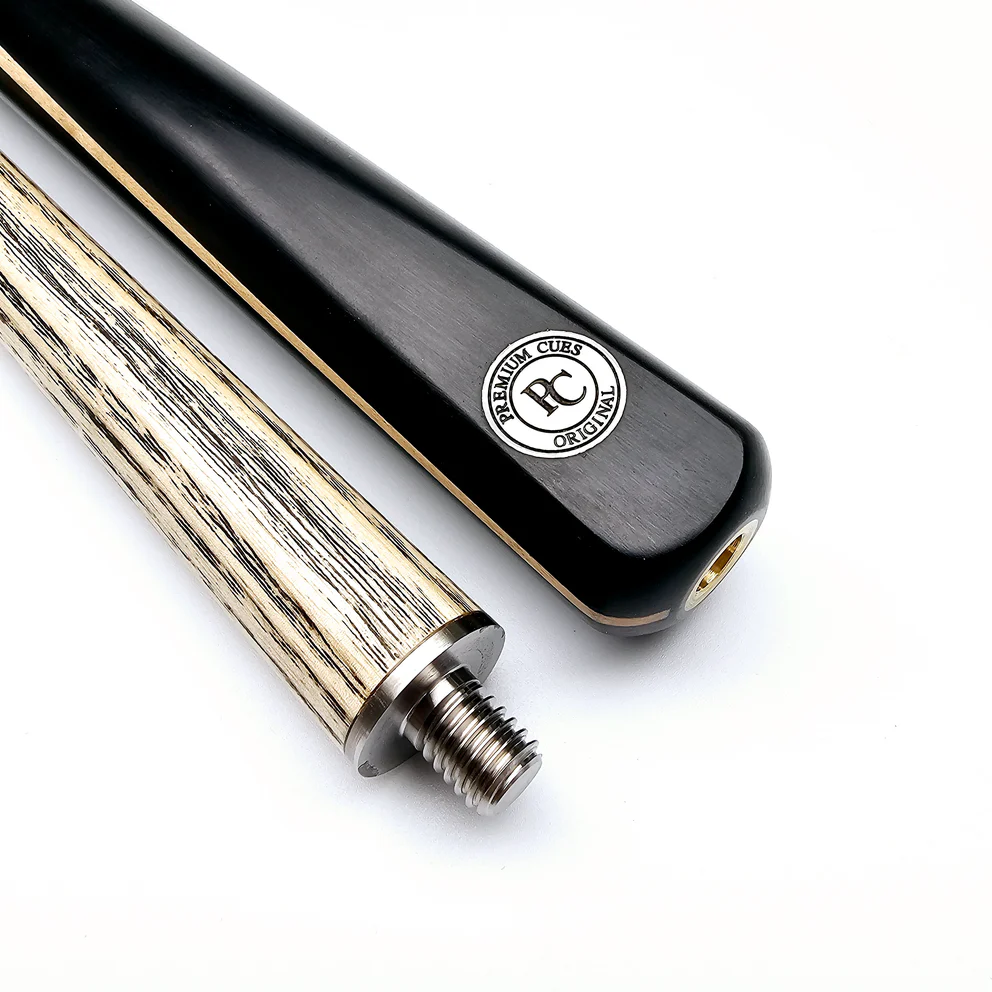 | Specifications | Cue Length: 58" (147.3cm) Tip Size: 9.5mm – 10mm Shaft: Ash Shaft Length: 29.5" (74.9cm) inc. male joint Butt: 19 inch Ebony splice Butt Length: 29" (73.6cm) Butt Decoration: Thick Maple veneer Joint: Centre Titanium Joint Butt End Joint: Yes, fits Premium Cues extensions |