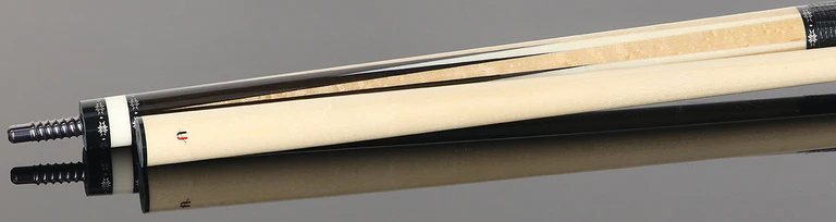 This cue blends refined aesthetics with precision engineering, starting with a rich ebony forearm adorned with six long, natural Birdseye maple points. These are complemented by three mid and three short white poly points, creating a visually striking and balanced design. The ebony butt sleeve echoes this motif, featuring six long Birdseye maple points along with matching mid and short white poly inlays, offering seamless continuity throughout the cue’s body.